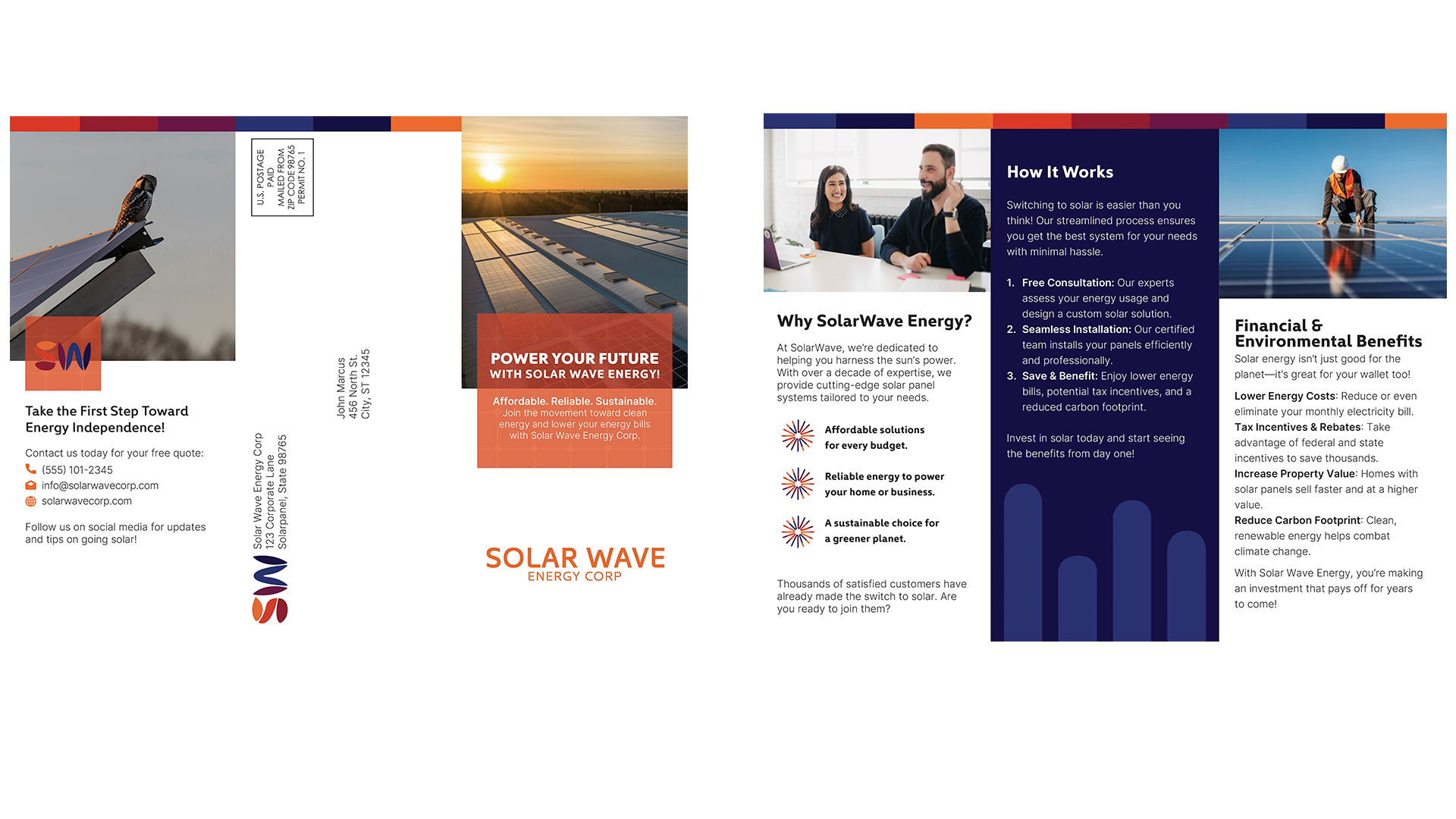 Solar Wave is a conceptual corporate brand created as a branding exercise to explore identity design for an eco-conscious company. Focused on providing solar energy solutions for homes and businesses, Solar Wave emphasizes both environmental impact and financial benefits. This project allowed me to develop a cohesive brand identity that reflects innovation, sustainability, and professionalism. The showcased elements, including the logo, brand pattern, and color palette, establish a strong visual foundation, while the trifold brochure and stationery reinforce brand consistency across print materials. Additionally, designing sections of the annual report strengthened my ability to balance corporate aesthetics with clear, engaging communication. Through this project, I refined my skills in strategic brand development, corporate design, and layout composition, ensuring a polished and compelling visual presence.